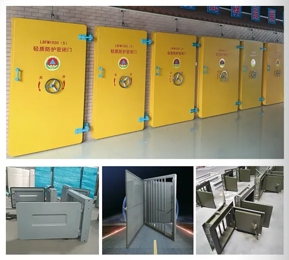 密闭门的门扇是由平钢板、井字筋板和國梁等部件组合焊接而成的。门框为槽钢、工字钢组合而成的框架结构。拉紧装置为楔形滑块楔紧。门枢采用滚动轴承支撑。密闭门是一种能增加气密性的门。